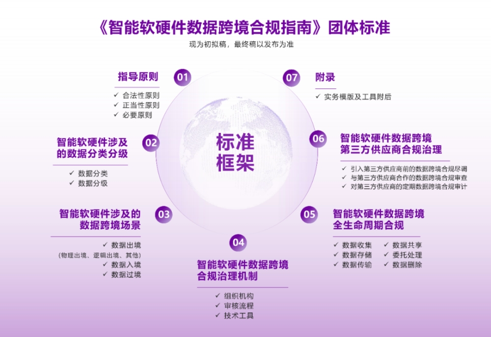 本標準立足于中國現有的數據跨境合規要求體系,更致力于填補實操性空白,為智能軟硬件企業提供一套可落地、可操作的數據跨境合規解決方案: