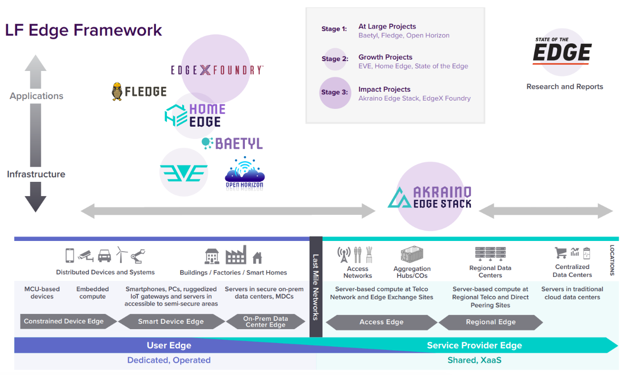 Linux基(ji)金會成立的LF邊緣(yuan)小(xiao)組,負責組織和建(jian)立用于邊緣(yuan)計算的開(kai)源(yuan)框架。目(mu)前LF邊緣(yuan)計算架構日趨成熟,其中的開(kai)源(yuan)項目(mu)項目(mu)幾乎涵蓋邊緣(yuan)計算生態系(xi)統的所(suo)有元素,關(guan)鍵項目(mu)包括Akraino Edge Stack、EdgeX Foundry和Project EVE等(deng)。