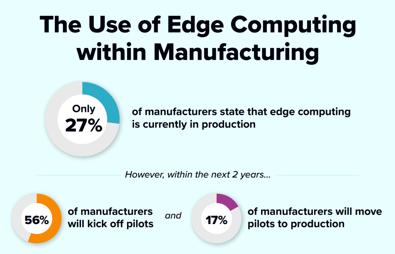 目前雖然只有27%的制造企業在生產中使用邊緣計算,但越來越多的制造商正在研究如何利用物聯網、人工智能等技術提升生產潛力,增加流程的靈活性。