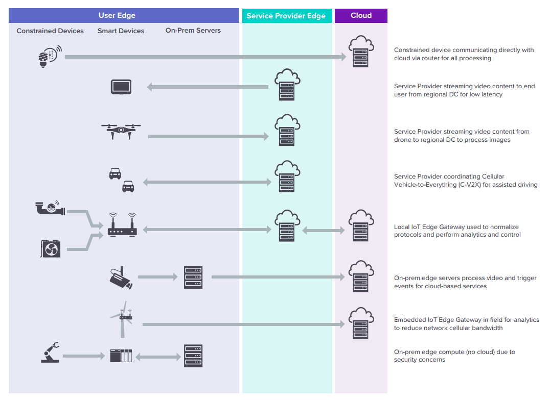 當(dang)然,研究報告在(zai)(zai)對(dui)邊(bian)緣進行了明確的(de)分類的(de)同時,也(ye)提出(chu)在(zai)(zai)實際(ji)應用中,最終(zhong)(zhong)用戶邊(bian)緣和服務(wu)提供(gong)商邊(bian)緣不一定必須搭配使用。有些最終(zhong)(zhong)用戶邊(bian)緣直(zhi)接與云平臺通信(xin),而有些情況服務(wu)提供(gong)商邊(bian)緣就(jiu)可(ke)充分滿足需求。