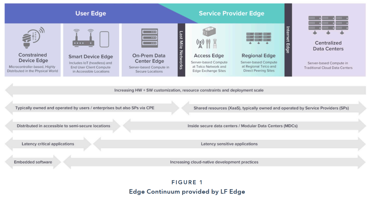 對于(yu)邊(bian)緣的分(fen)類,Linux基金會給出(chu)了明確(que)的界定。邊(bian)緣是一個連續(xu)體,根據商(shang)業邏輯和服務提供(gong)者的差異,可以劃(hua)分(fen)為“最終(zhong)用戶邊(bian)緣”和“服務提供(gong)商(shang)邊(bian)緣”。