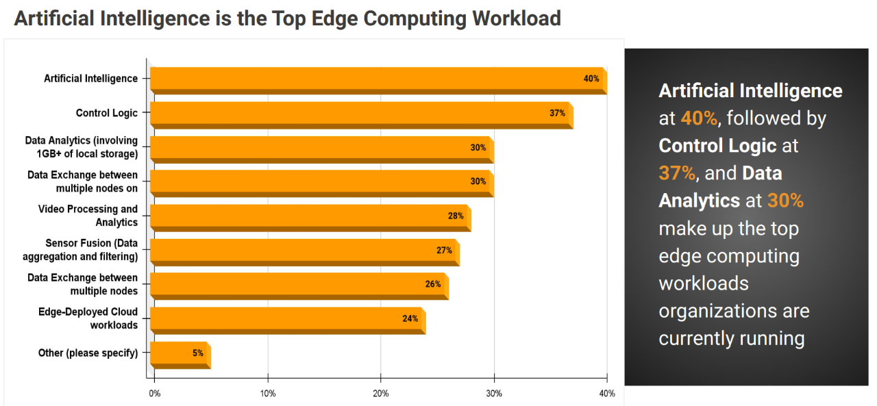 在邊緣計算的應用過程中,人工智能占(zhan)據(ju)了最大的(de)“人工”。按照工作量劃分,人工智能(neng)占(zhan)40%,其次是(shi)控制(zhi)邏輯占(zhan)37%和數據(ju)分析占(zhan)30%。