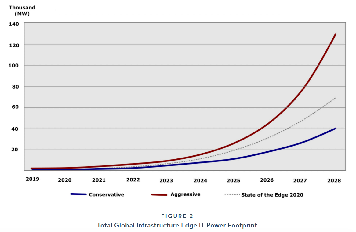 根據保守預測,邊(bian)緣計算的年度復(fu)合增長率為40%;根據激進(jin)的預測,該數(shu)字(zi)可達(da)驚人的70%。