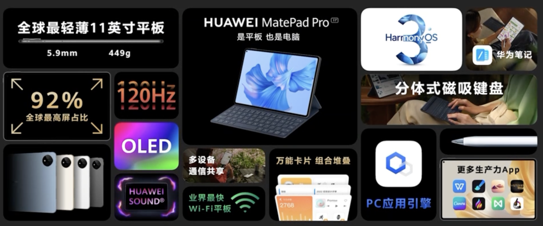 言下之意,華為的新款平板在功能與性能方面似乎都可以與電腦一爭高下,而首款搭載HarmonyOS 3的華為MatePad Pro11英寸也(ye)的確堪當(dang)此(ci)評(ping)價(jia)。在HarmonyOS 3的加(jia)持下,其不僅能夠與(yu)華為手機、PC等諸多設備(bei)輕松互聯,還實現(xian)了遠程(cheng)PC控(kong)制、多設備(bei)通(tong)信共享和PC應用引擎三(san)大(da)創新。
