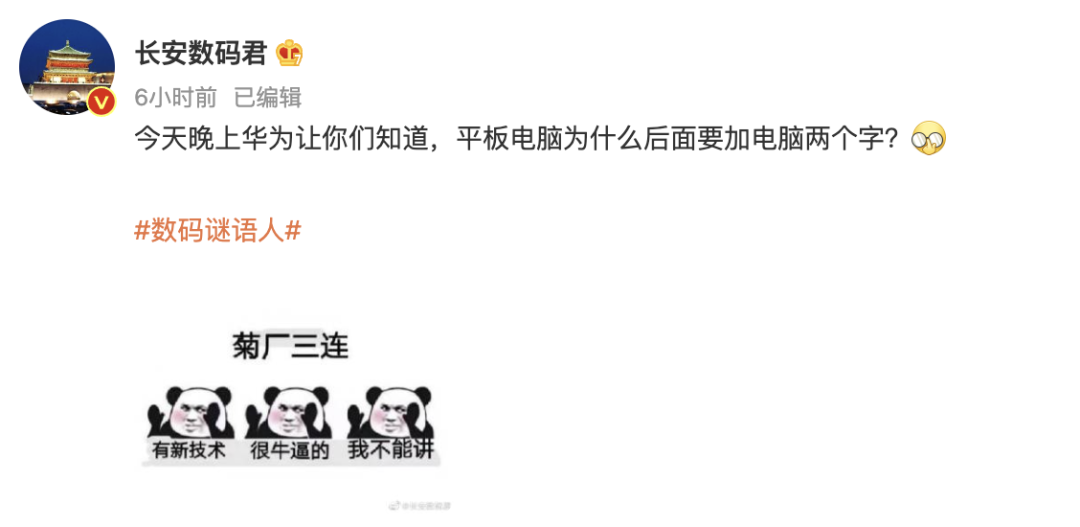 就在華為發布會開幕前夕,博主長安數碼君便發布微博稱:今天晚上華為讓你們知道,平板電腦為什么后面要加電腦兩個字?