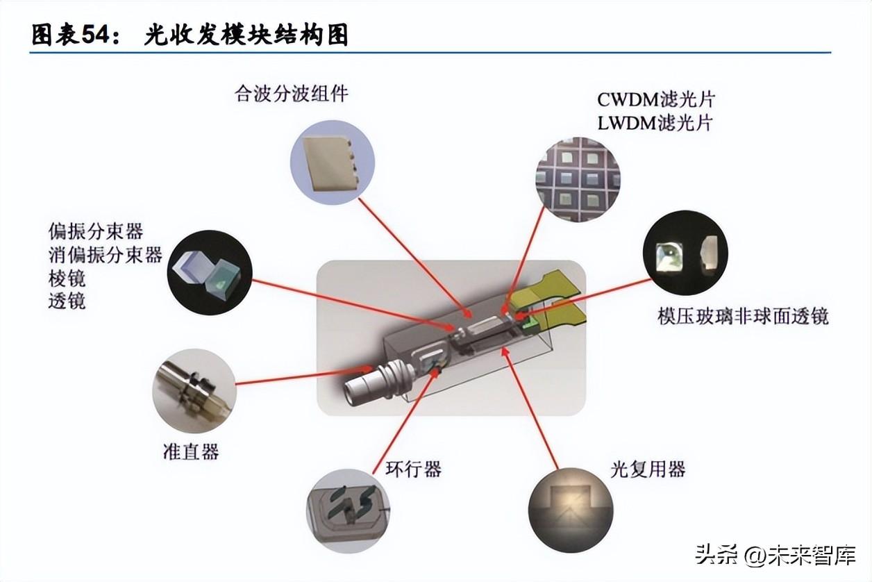 高(gao)速率激光(guang)(guang)(guang)(guang)芯(xin)片(pian)(pian):光(guang)(guang)(guang)(guang)通(tong)(tong)信(xin)(xin)系(xi)統(tong)(tong)(tong)發(fa)射端(duan)(duan)核(he)心(xin)上游元器件,為(wei)系(xi)統(tong)(tong)(tong)帶(dai)寬(kuan)的(de)(de)決(jue)定因(yin)素之一(yi)。根據 源杰(jie)科技招(zhao)股(gu)書,光(guang)(guang)(guang)(guang)通(tong)(tong)信(xin)(xin)系(xi)統(tong)(tong)(tong)中(zhong)的(de)(de)光(guang)(guang)(guang)(guang)芯(xin)片(pian)(pian)包括激光(guang)(guang)(guang)(guang)器芯(xin)片(pian)(pian)與探(tan)測器芯(xin)片(pian)(pian),在光(guang)(guang)(guang)(guang)通(tong)(tong)信(xin)(xin)的(de)(de)產(chan)業 鏈中(zhong),光(guang)(guang)(guang)(guang)芯(xin)片(pian)(pian)可以進一(yi)步組裝加(jia)工成光(guang)(guang)(guang)(guang)電(dian)(dian)子器件,再集成到光(guang)(guang)(guang)(guang)通(tong)(tong)信(xin)(xin)設備(bei)的(de)(de)收(shou)發(fa)模塊實(shi)(shi)現廣 泛應用。光(guang)(guang)(guang)(guang)通(tong)(tong)信(xin)(xin)系(xi)統(tong)(tong)(tong)傳輸信(xin)(xin)號(hao)過程中(zhong),發(fa)射端(duan)(duan)通(tong)(tong)過激光(guang)(guang)(guang)(guang)器芯(xin)片(pian)(pian)進行(xing)電(dian)(dian)光(guang)(guang)(guang)(guang)轉換(huan)(huan),將(jiang)電(dian)(dian)信(xin)(xin)號(hao)轉 換(huan)(huan)為(wei)光(guang)(guang)(guang)(guang)信(xin)(xin)號(hao),經過光(guang)(guang)(guang)(guang)纖傳輸至接收(shou)端(duan)(duan),接收(shou)端(duan)(duan)通(tong)(tong)過探(tan)測器芯(xin)片(pian)(pian)進行(xing)光(guang)(guang)(guang)(guang)電(dian)(dian)轉換(huan)(huan),將(jiang)光(guang)(guang)(guang)(guang)信(xin)(xin)號(hao)轉 換(huan)(huan)為(wei)電(dian)(dian)信(xin)(xin)號(hao)。本章中(zhong)我們重點討論發(fa)射端(duan)(duan)中(zhong)的(de)(de)高(gao)速率激光(guang)(guang)(guang)(guang)芯(xin)片(pian)(pian),作為(wei)實(shi)(shi)現電(dian)(dian)信(xin)(xin)號(hao)轉換(huan)(huan)為(wei)光(guang)(guang)(guang)(guang) 信(xin)(xin)號(hao)的(de)(de)核(he)心(xin)上游元件,高(gao)速率激光(guang)(guang)(guang)(guang)芯(xin)片(pian)(pian)是決(jue)定信(xin)(xin)息傳輸速度和網絡可靠性(xing)的(de)(de)關鍵元件之一(yi)。