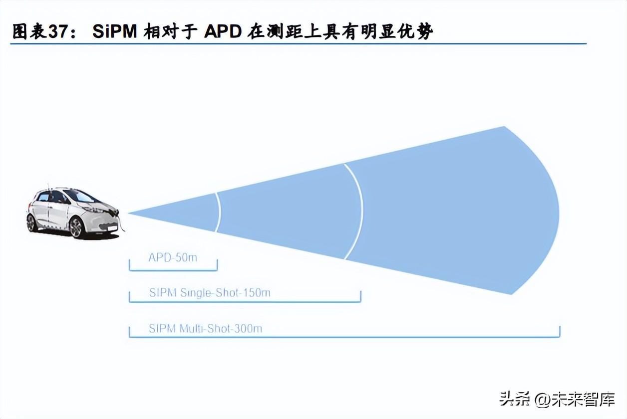 2)激光(guang)雷達(da)(da)(da)領域:APD 是(shi)(shi)(shi)(shi)現行成(cheng)熟方(fang)案,SPAD/SiPM 是(shi)(shi)(shi)(shi)未(wei)來(lai)發展趨勢(shi) 。APD 目(mu)前應用最廣(guang)泛,而 SPAD 和 SiPM 是(shi)(shi)(shi)(shi)未(wei)來(lai)之(zhi)選。對(dui)于激光(guang)雷達(da)(da)(da)領域,APD 也(ye)是(shi)(shi)(shi)(shi)目(mu)前 應用最廣(guang)泛的(de)探測(ce)芯片方(fang)案,因其具備 10-100 倍(bei)的(de)增(zeng)益能(neng)力(li)(li),能(neng)在(zai)(zai)低光(guang)強環境(jing)下完成(cheng)有效 探測(ce)。激光(guang)雷達(da)(da)(da)未(wei)來(lai)會更傾向(xiang)于 SPAD/SiPM(SiPM 本(ben)質上(shang)是(shi)(shi)(shi)(shi) SPAD 的(de)陣列(lie)形式(shi)),原因是(shi)(shi)(shi)(shi): SPAD/SiPM 相對(dui) APD 具備兩大(da)優勢(shi):1)SPAD/SiPM 是(shi)(shi)(shi)(shi)工作在(zai)(zai)蓋(gai)革模式(shi)下的(de)雪崩(beng)二極管, 理論上(shang)的(de)增(zeng)益能(neng)力(li)(li)是(shi)(shi)(shi)(shi) APD 的(de) 100 萬倍(bei)以上(shang),可在(zai)(zai)更低的(de)光(guang)強環境(jing)下完成(cheng)探測(ce)任務;2)SiPM 是(shi)(shi)(shi)(shi)多個 SPAD 的(de)陣列(lie)形式(shi),與未(wei)來(lai)的(de)陣列(lie)式(shi)光(guang)源契(qi)合,并(bing)可獲得(de)更高的(de)可探測(ce)范圍,也(ye)更 易(yi)集成(cheng) CMOS 工藝(yi)。國外(wai)知名激光(guang)雷達(da)(da)(da)廠商 Ouster、ibeo、Opsys 等(deng)均已在(zai)(zai)布局(ju) VCSEL+SPAD 方(fang)案的(de)激光(guang)雷達(da)(da)(da),預計將于未(wei)來(lai)三年內(nei)陸續推出。
