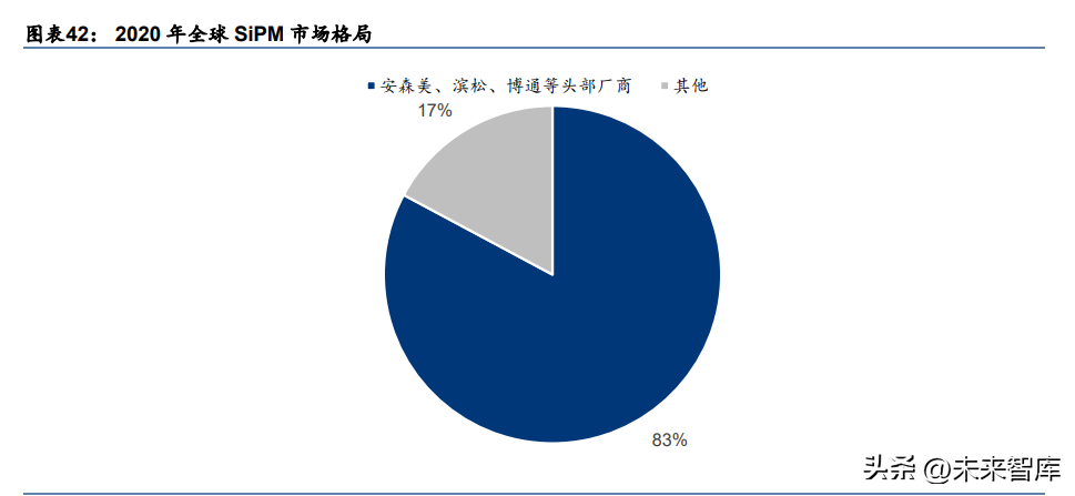 全球(qiu) SiPM 市(shi)場(chang)集中度較(jiao)高。根據 QYResearch 數(shu)據,全球(qiu) SiPM 市(shi)場(chang)主要(yao)集中于(yu)頭部企 業,2020 年以安森美(mei)、濱(bin)松、博通(tong)為首的頭部廠商合計市(shi)占率達到(dao) 83%,SiPM 產品技術 難度大,進入門檻(jian)高,且業內收(shou)購事件頻繁,新進入者較(jiao)難立足。