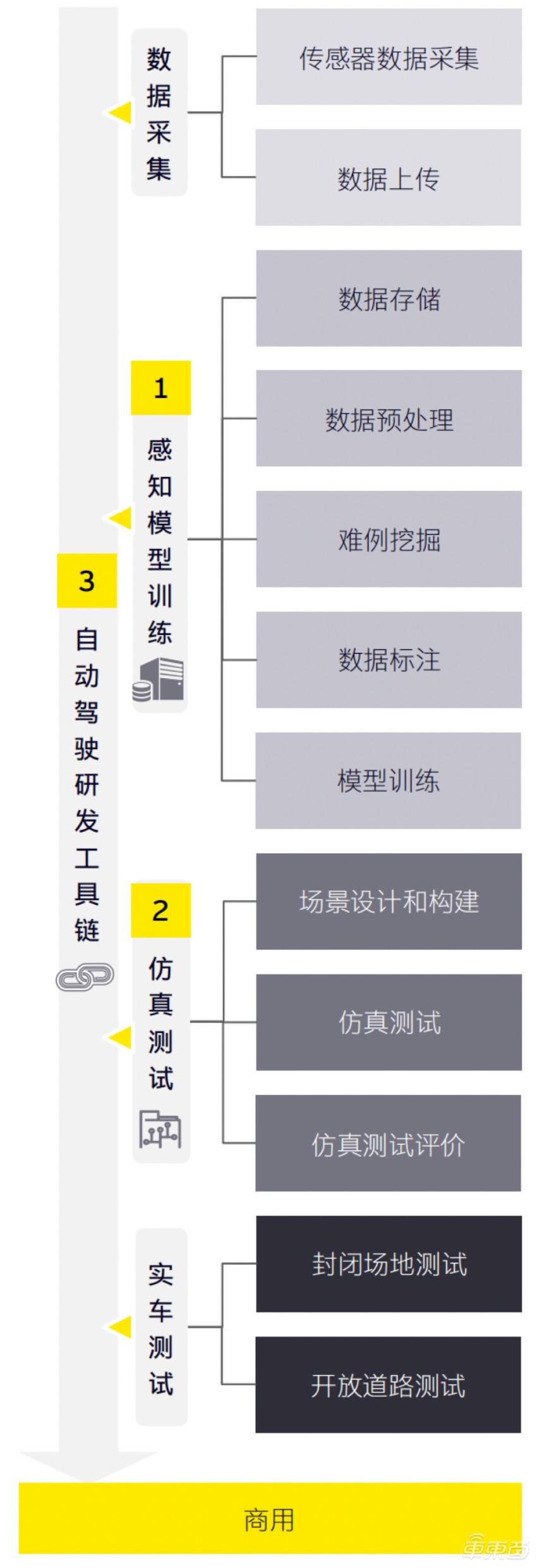 無獨有偶,云服務從底層處理能力上來說,更容易幫助自動駕駛研發工具鏈實現數據閉環,并構建一套覆蓋數據采集、存儲、處理、標注、模型訓練、仿真、評測等一系列自動化開發工具鏈。
