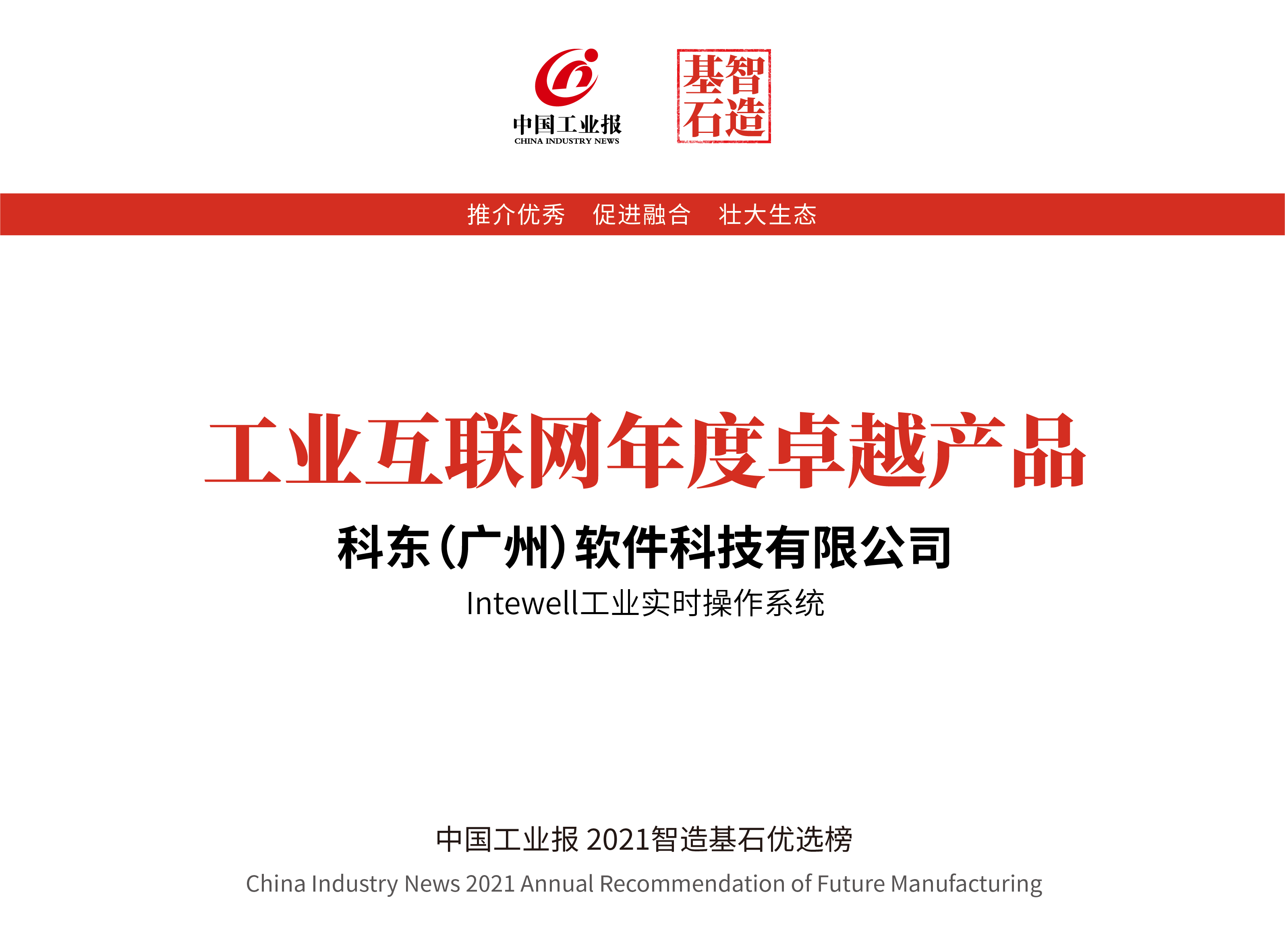 中國工業報2021“智造基石”優選榜近期揭曉。Intewell工業級網絡操作系統獲評工業互聯網年度卓越產品。