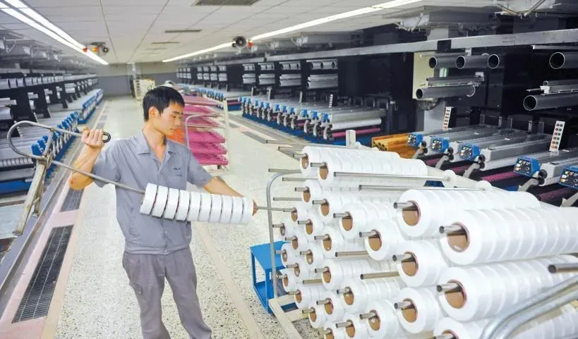 上千臺(tai)紡紗(sha)設備(bei)有序運轉