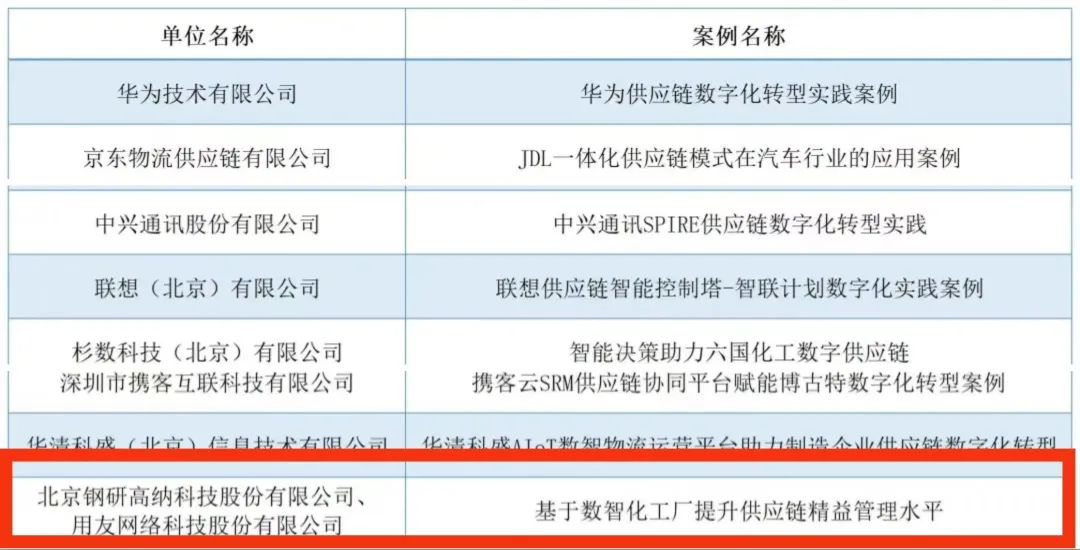 為探索不同行業供應鏈數字化轉型可復制可推廣的經驗,推動我國產業鏈供應鏈高質量發展,工業互聯網產業聯盟供(gong)應鏈特設(she)組遴(lin)選出(chu)20個“2022年供(gong)應鏈數(shu)字(zi)化轉型案(an)例(li)”。用友(you)網(wang)絡(luo)科(ke)技股(gu)份有(you)限公司(si)與北京鋼(gang)研(yan)高(gao)納科(ke)技股(gu)份有(you)限公司(si)聯合申報的“基于數(shu)智化工廠提(ti)升供(gong)應鏈精益管理水平”案(an)例(li)成功入選!此案(an)例(li)為用友(you)為北京鋼(gang)研(yan)高(gao)納搭建的“一(yi)庫,一(yi)網(wang),一(yi)平臺”項目。