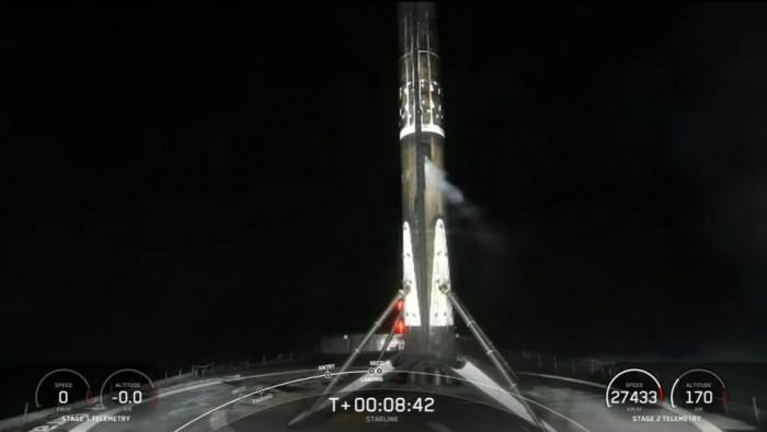 在(zai)發射BlueWalker 3和(he)Starlink衛星約(yue)8.5分鐘后,SpaceX公司的(de)獵(lie)鷹9號(hao)火(huo)箭的(de)第一級返回地球,在(zai)該(gai)公司的(de)無人(ren)機A Shorteship Of Gravitas上精確著陸。這次(ci)著陸創造了獵(lie)鷹9號(hao)助推(tui)器發射次(ci)數的(de)新紀錄。