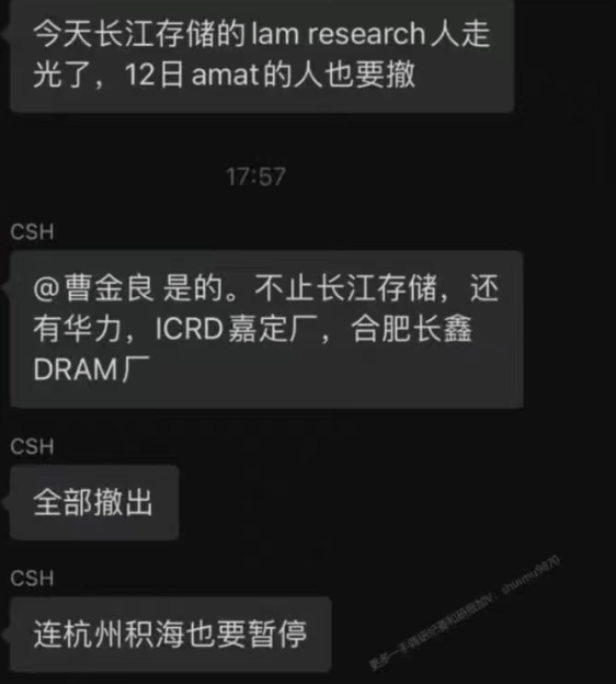 截(jie)至目前,五大半導體(ti)設備巨頭的(de)員工已陸續撤出(chu)中(zhong)國(guo)大陸的(de)晶圓廠(chang),據《華爾街(jie)日報(bao)(bao)》援(yuan)引(yin)知(zhi)(zhi)情人(ren)(ren)士的(de)報(bao)(bao)導,美國(guo)供應商已經暫停對(dui)長江(jiang)存儲已安裝設備的(de)支(zhi)持,并暫時停止安裝新(xin)工具。知(zhi)(zhi)情人(ren)(ren)士說,這(zhe)些供應商也暫時撤出(chu)了他們(men)在長江(jiang)存儲的(de)員工。