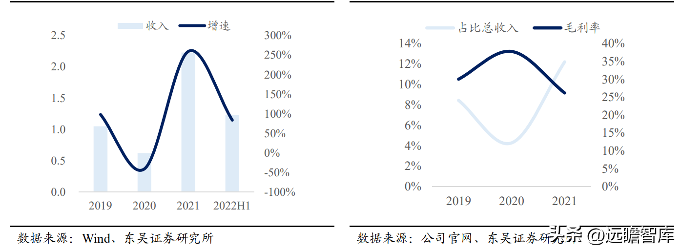 2)通信模塊,2019-2021 年(nian)收入分(fen)別為 2.99、4.44、4.68 億元,增速分(fen)別為 81.78%、48.79%、5.38%,占比(bi)公司總收入分(fen)別為24.01%、30.68%、25.66%,毛利(li)率分(fen)別為19.85%、25.09%、35.50%,近三年(nian)來(lai)盈利(li)能力(li)逐(zhu)漸提升。