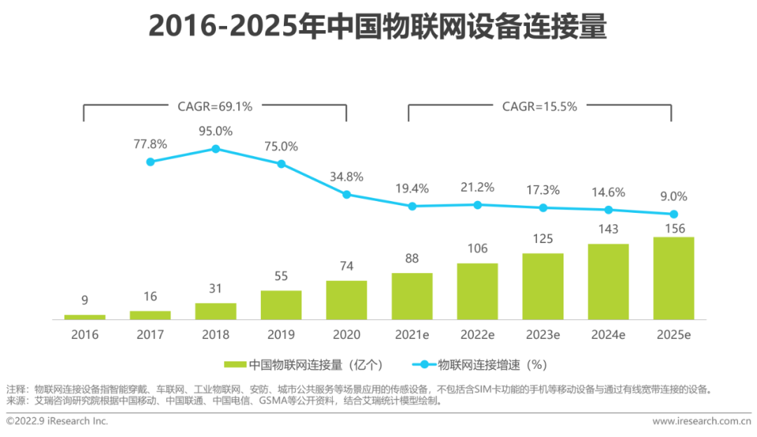 根據艾瑞咨詢(xun)測算,中國物聯網(wang)連接量將從2019年的55億(yi)個增長至2025年的156億(yi)個。物聯網感知數據量激增,數據類型愈發復雜多樣。隨著智慧城市、自動駕駛、工業互聯網等應用的落地,海量的終端設備實時產生數據,集中式云計算在帶寬負載、網絡延時、數據管理成本等方面將愈發顯得捉襟見肘,難以適應數據頻繁交互的需求,邊緣側的價值將進一步凸顯。