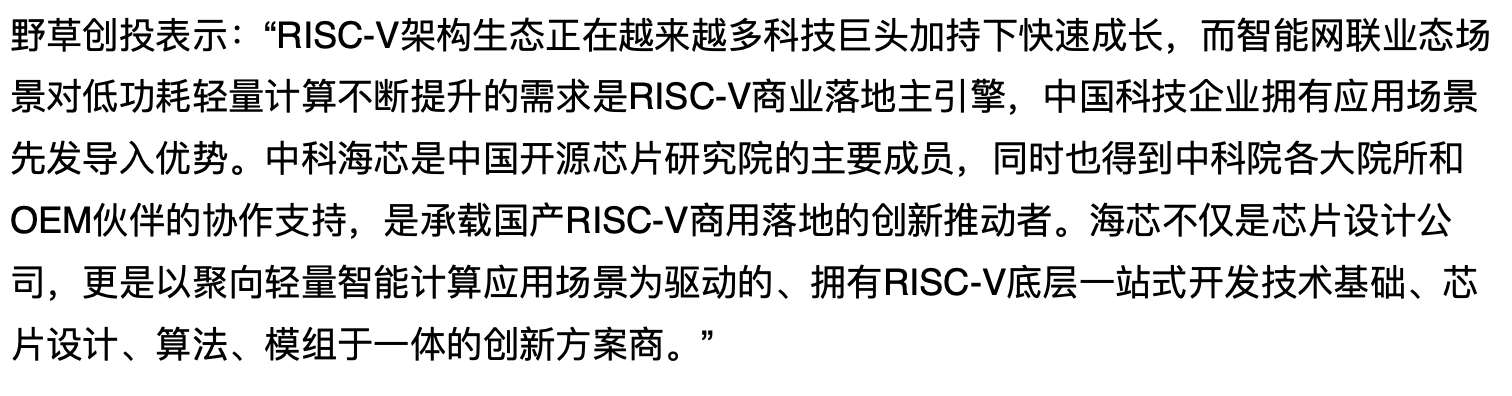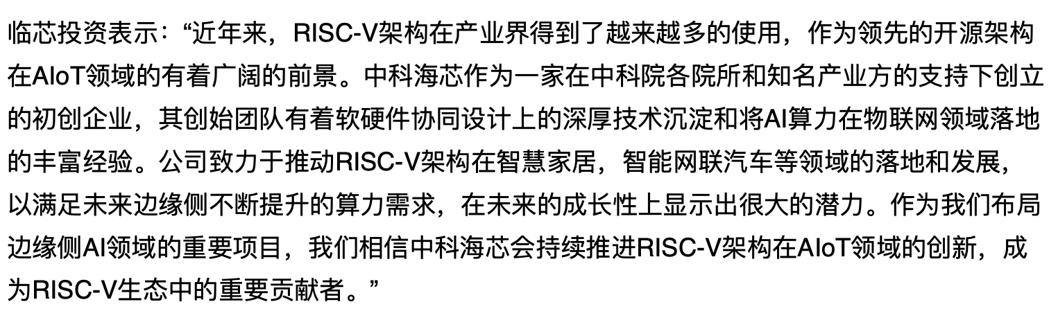 公司核(he)心團(tuan)隊主要來自中(zhong)科院所、英特爾(er)(er)、英飛凌、霍尼韋爾(er)(er)、華為、海(hai)爾(er)(er)等(deng)國(guo)內外知名(ming)公司和研究機構(gou),創辦初(chu)期得到了海(hai)爾(er)(er)集團(tuan)“海(hai)創匯(hui)”和北(bei)大校友“溪山天使會”的種子輪支持(chi)(chi)。同時,中(zhong)科海(hai)芯在倪光南院士以及(ji)團(tuan)隊指導和支持(chi)(chi)下,也成(cheng)為最早加盟(meng)RISC-V聯盟(meng)的成(cheng)員之(zhi)一。
