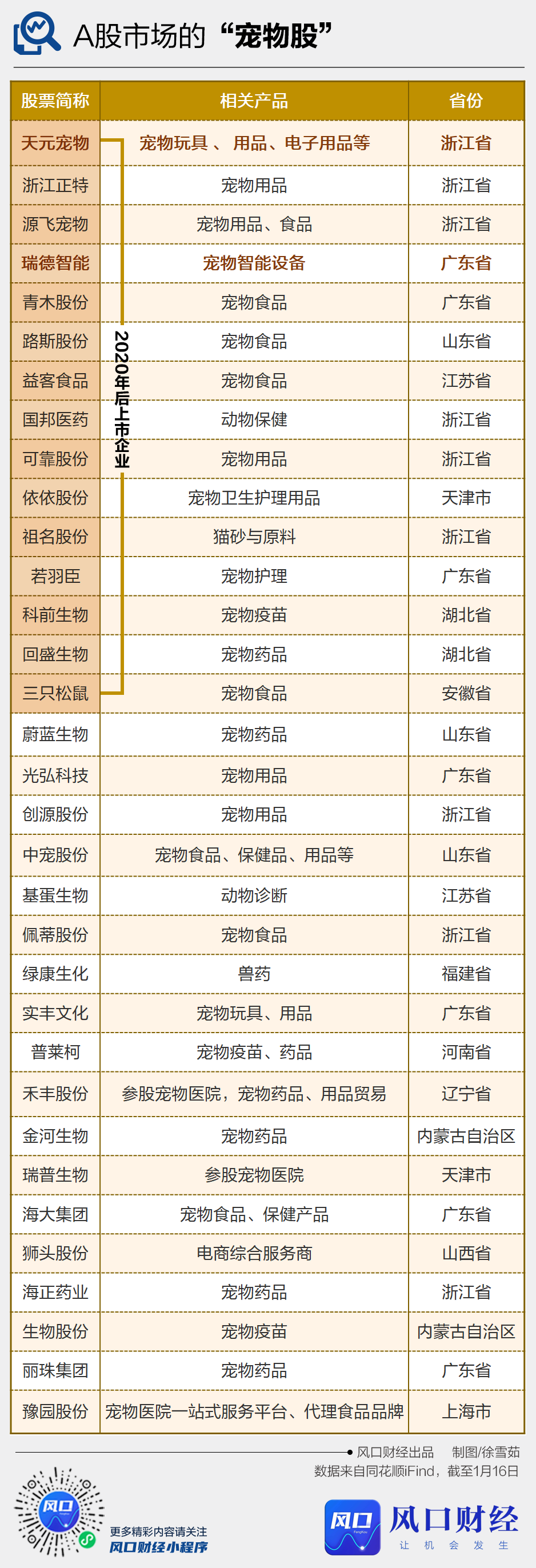 A股(gu)市(shi)(shi)場給出的反饋的確(que)如此。截至(zhi)2023年(nian)1月(yue)16日(ri),我國A股(gu)市(shi)(shi)場共有(you)(you)33家企業與寵(chong)物經濟概念有(you)(you)關(guan)。其中,有(you)(you)14家為2020年(nian)后上(shang)市(shi)(shi)的企業。