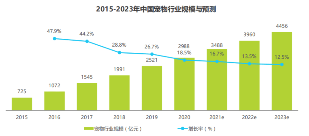 查閱電商網站數據,寵物智能飲水機和喂食器月銷量平均在3000件左右,隨著國內寵物市場的不斷增長,《2022年中國寵物行業趨勢洞察白皮書》中指出,2022年中國寵物實體市場規模將達1158億。且艾瑞咨詢發布的《2021年中國寵物消費趨勢白皮書》中預測,未來三年我國寵物行業復合增速在14.2%,到2023年規模將達到4456億元。