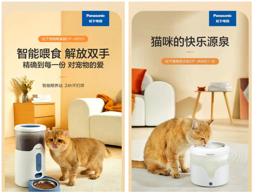 但就在同一個月內,家電領域巨頭松下電器(Panasonic)開始發力寵物智能用品賽道,并在線上渠道低調推出了2款寵物智能產品,涵蓋寵物智能喂食器以及寵物智能飲水機兩個品類;