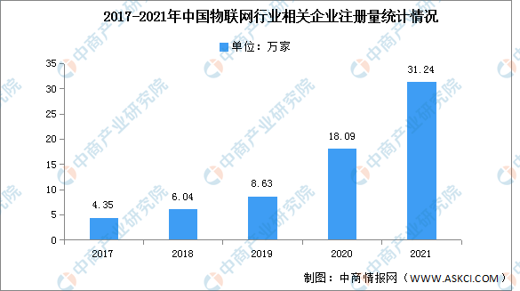 近年來,隨著物(wu)(wu)聯(lian)(lian)(lian)網行(xing)業(ye)的(de)迅(xun)速(su)發(fa)展,不(bu)斷有新(xin)企(qi)業(ye)入(ru)局,物(wu)(wu)聯(lian)(lian)(lian)網行(xing)業(ye)企(qi)業(ye)數量(liang)增速(su)不(bu)斷提升(sheng),2021年我國物(wu)(wu)聯(lian)(lian)(lian)網行(xing)業(ye)相關企(qi)業(ye)注冊量(liang)為31.24萬(wan)家,同比增長72.7%。但由于物(wu)(wu)聯(lian)(lian)(lian)網行(xing)業(ye)結構性供給過剩(sheng)與短缺問題同時存(cun)在,企(qi)業(ye)實際盈利能力和物(wu)(wu)聯(lian)(lian)(lian)網的(de)應用滲透并未(wei)顯著提升(sheng),預計(ji)未(wei)來新(xin)成立物(wu)(wu)聯(lian)(lian)(lian)網企(qi)業(ye)增速(su)將(jiang)放緩。