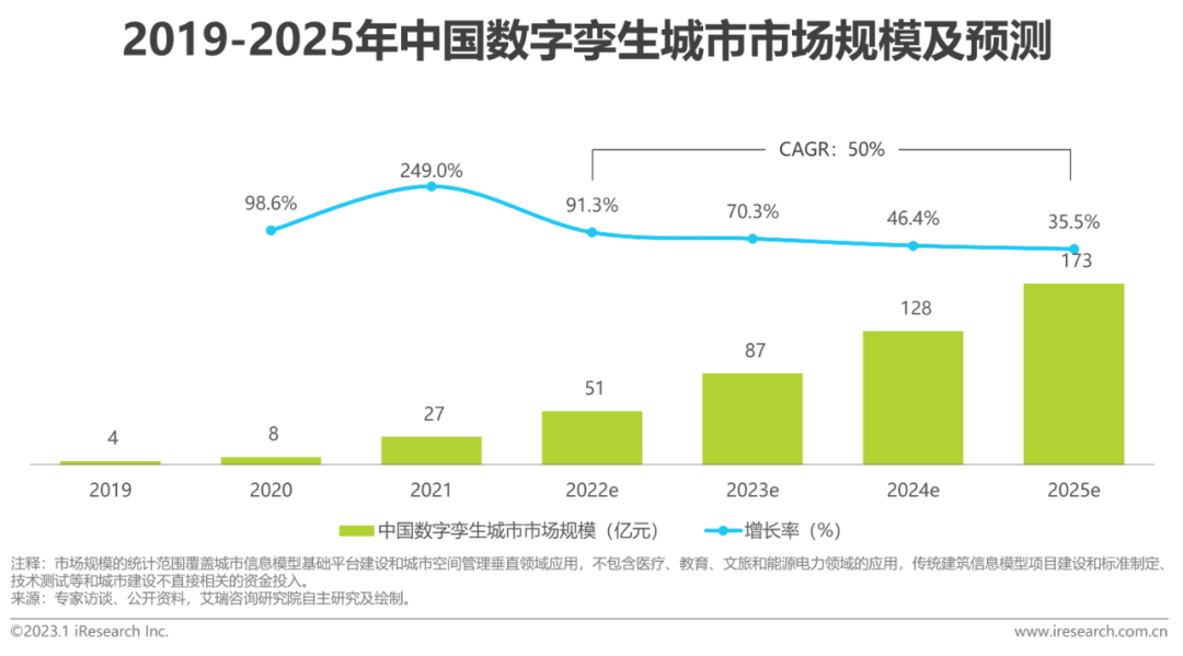 ?市場(chang)規模:2022年中國數字孿生(sheng)城市市場(chang)規模為51億元(yuan),年復合增長率達50%,城市信息模型基礎(chu)平臺(tai)和場(chang)景化應用同步落地