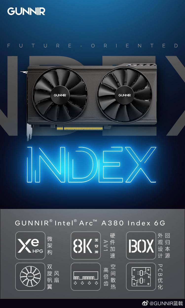 參數方面,這款顯卡搭載英特爾銳炫 A380 GPU,8 個 Xe 核心,GPU 頻率為 2000MHz,6GB 96bit GDDR6 顯存,接口包括 3 個 DP+1 個 HDMI,75W TBP,無需外接供電。