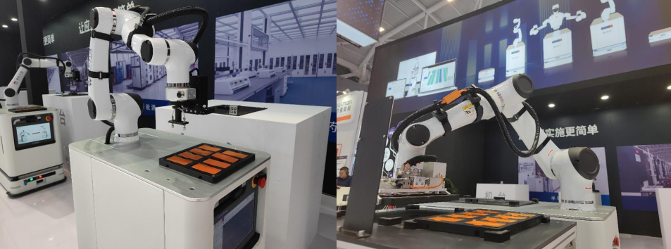 墨影科技展位展示(shi)了移動協作(zuo)機器(qi)人在半導(dao)體、精密加工、3C電子(zi)、新能源等矩陣(zhen)式柔性(xing)制造(zao)產線(xian)的上(shang)下(xia)料場景。