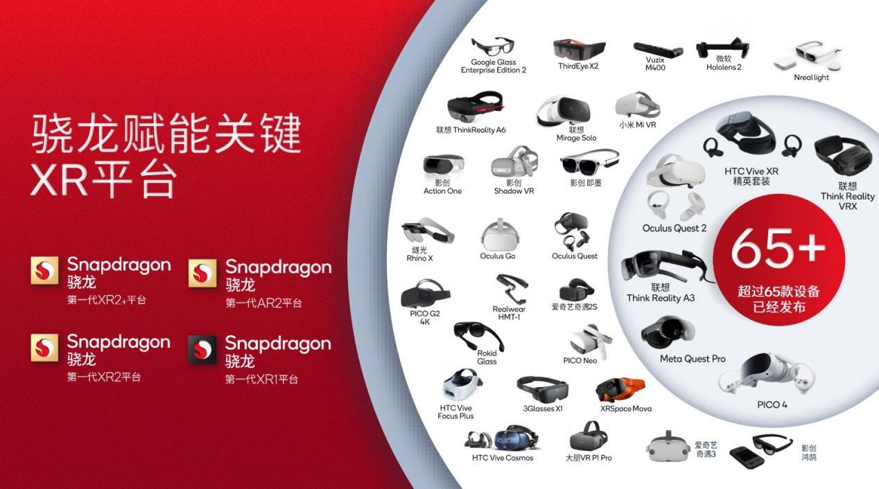 而截止(zhi)目前(qian),已有超過 65 款搭載驍龍 XR 平臺的終端設(she)(she)備(bei)發布,包括 VR、AR 設(she)(she)備(bei),覆蓋消費和(he)企業市(shi)場。