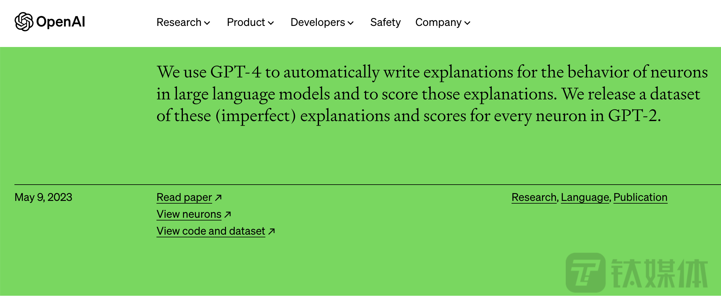 鈦媒(mei)體App 5月10日(ri)消息,OpenAI今晨(chen)發(fa)布(bu)一個(ge)關于GPT-4語(yu)言模(mo)型(xing)解(jie)析神經元(yuan)(yuan)(yuan)的(de)(de)(de)對(dui)齊性研究成果(guo),利用自(zi)研基于GPT-4技術(shu)的(de)(de)(de)開(kai)源工具,來(lai)嘗試計算其(qi)(qi)他架(jia)構、更(geng)簡單語(yu)言模(mo)型(xing)上神經元(yuan)(yuan)(yuan)的(de)(de)(de)行為并(bing)對(dui)其(qi)(qi)進行評分,而且可以將其(qi)(qi)應用于另一種語(yu)言模(mo)型(xing)中的(de)(de)(de)神經元(yuan)(yuan)(yuan)——本(ben)次選(xuan)擇4年前發(fa)布(bu)、包含307200個(ge)神經元(yuan)(yuan)(yuan)的(de)(de)(de)大模(mo)型(xing)GPT-2為實(shi)驗樣本(ben),公開(kai)了(le)這(zhe)些GPT-2神經元(yuan)(yuan)(yuan)解(jie)釋(shi)和分數的(de)(de)(de)數據集。
