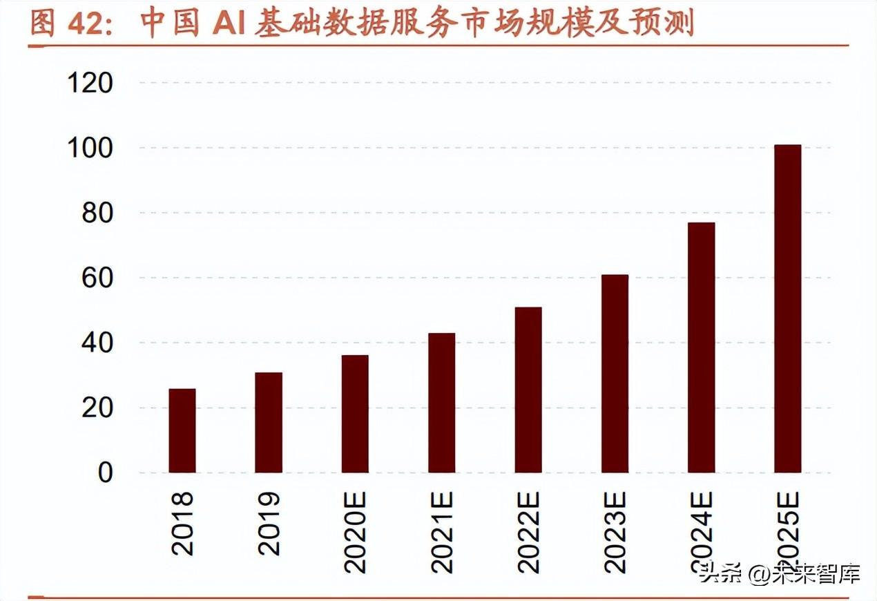 數(shu)據(ju)是大模(mo)(mo)型高(gao)質量回答的(de)(de)基(ji)(ji)礎。在各家大模(mo)(mo)型訓練(lian)算法(fa)類似的(de)(de)背景下(xia),高(gao)質量的(de)(de)數(shu)據(ju)便(bian)成為兵家必爭之(zhi)地。結構化(hua) 數(shu)據(ju)是人工智(zhi)(zhi)能算法(fa)開發(fa)迭代的(de)(de)重要(yao)基(ji)(ji)礎,人工智(zhi)(zhi)能基(ji)(ji)礎數(shu)據(ju)服務市(shi)場(chang)受人工智(zhi)(zhi)能核(he)心產業發(fa)展(zhan)帶動(dong)仍將保持高(gao)速增 長,據(ju)德勤預測,2027 年市(shi)場(chang)規模(mo)(mo)有望達到 130-160 億元。從發(fa)展(zhan)趨(qu)勢(shi)看,標注復雜(za)化(hua)、自動(dong)化(hua)、全(quan)棧式服務需(xu)求(qiu) 以及愈(yu)加嚴(yan)格的(de)(de)數(shu)據(ju)合(he)規需(xu)求(qiu)是 AI 基(ji)(ji)礎數(shu)據(ju)服務市(shi)場(chang)的(de)(de)四大趨(qu)勢(shi)。