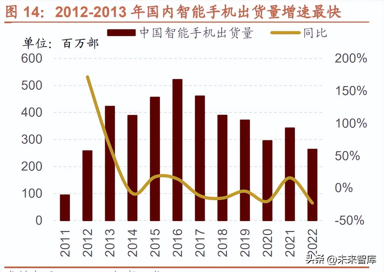 此階(jie)段(duan)內(nei)硬件設備的上漲主要由于需求(qiu)拉動帶(dai)來(lai)的業績高(gao)增。2012-2014 年(nian)(nian)間全球消費電(dian)子快(kuai)速發展,智(zhi)(zhi)能(neng)(neng)手機(ji)(ji)與平 板電(dian)腦(nao)的出(chu)貨量兩年(nian)(nian)內(nei)接近翻(fan)倍(bei),由此帶(dai)動相(xiang)應的半導(dao)體及(ji) TMT 設備需求(qiu)大幅增長。同樣,國內(nei)智(zhi)(zhi)能(neng)(neng)手機(ji)(ji)也(ye)在該階(jie) 段(duan)內(nei)迅猛發展,2013-2014 兩年(nian)(nian)出(chu)貨量 GAGR 超 100%。消費端(duan)的旺盛需求(qiu)開始向上游傳導(dao),2013-2014 年(nian)(nian) A 股計 算機(ji)(ji)、電(dian)子板塊歸母(mu)凈利潤同比高(gao)增,相(xiang)應的,股價(jia)也(ye)迎來(lai)戴維斯雙擊。