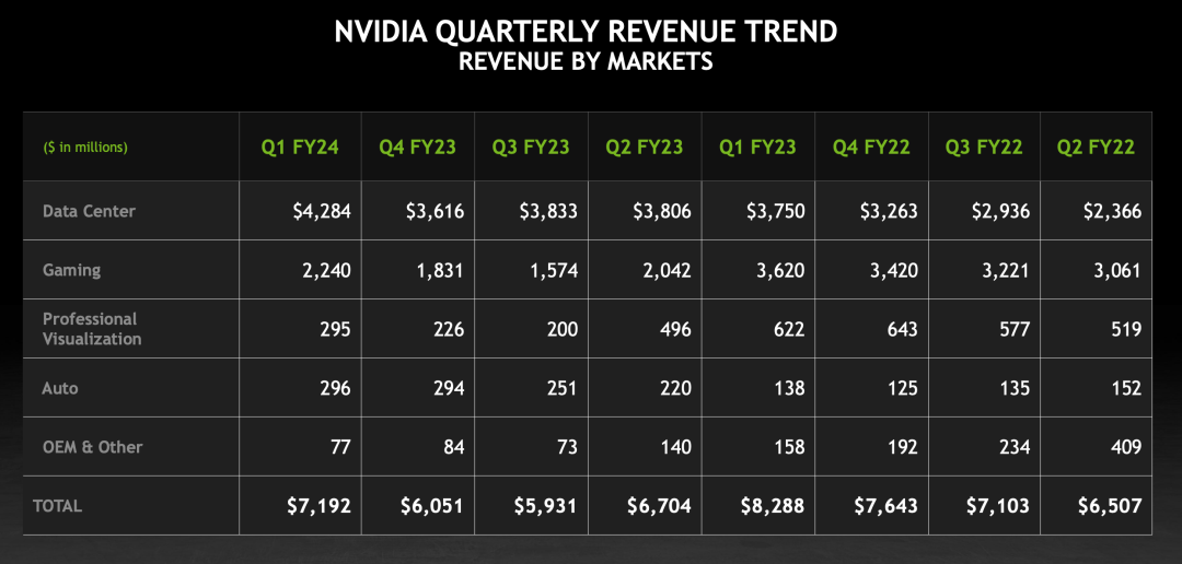 英偉達也在最新財(cai)報會上就釋放了這一利好信號,預期(qi)第二財(cai)季(ji)的銷售額(e)將達到110億美元,而(er)這主要來(lai)自數據(ju)中心業(ye)務(wu)的營收增長,不(bu)再(zai)是游戲業(ye)務(wu)。