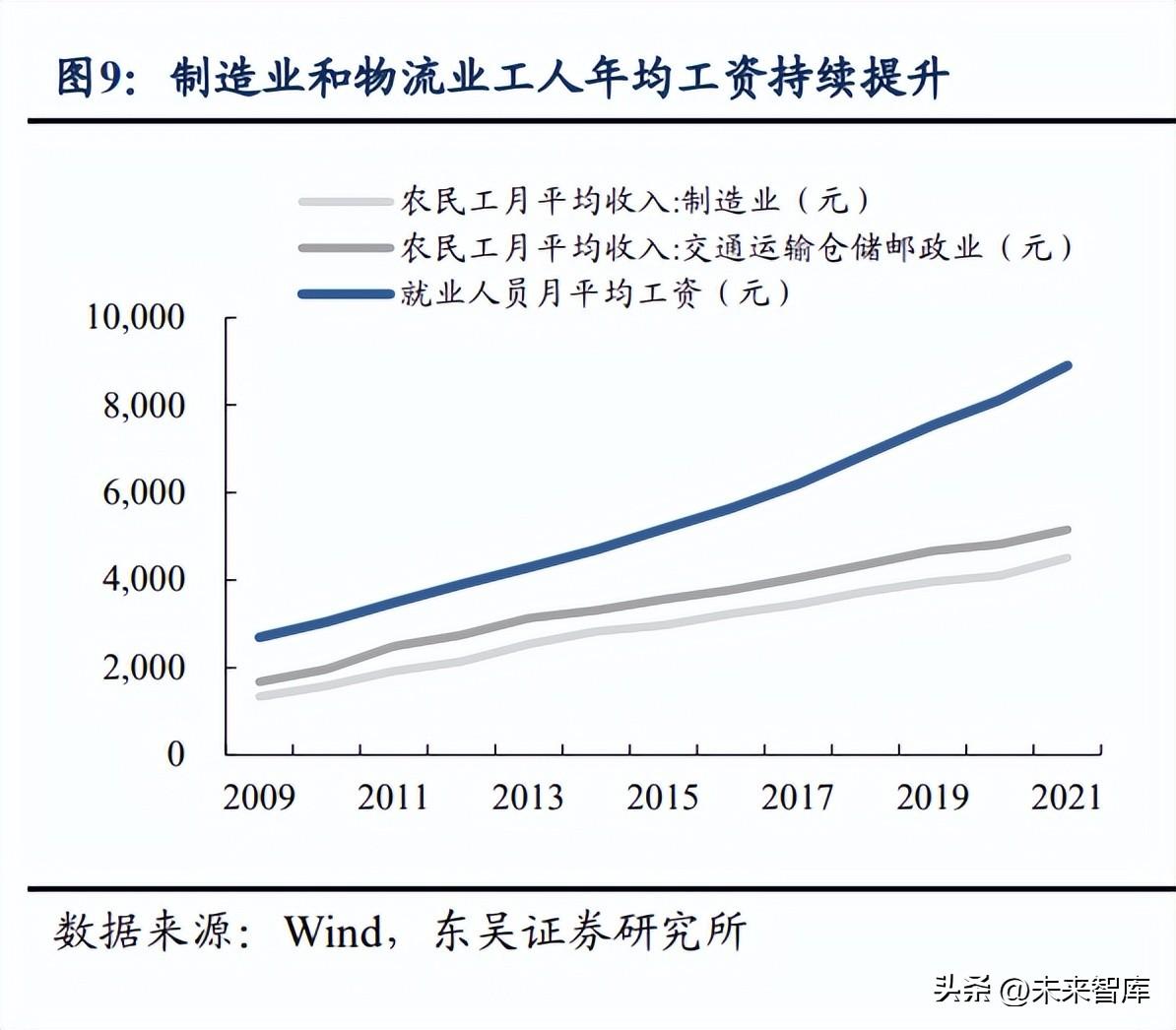 (1)從經濟性(xing)看:人(ren)(ren)(ren)(ren)口(kou)(kou)(kou)老齡化(hua)加劇導致人(ren)(ren)(ren)(ren)力成(cheng)本(ben)提升(sheng),機(ji)器(qi)(qi)替人(ren)(ren)(ren)(ren)為(wei)大(da)勢所(suo)趨(qu)。2013 年(nian)起我國 20-59 歲人(ren)(ren)(ren)(ren)口(kou)(kou)(kou)比率(lv)迎拐點,長期(qi)以(yi)來的人(ren)(ren)(ren)(ren)口(kou)(kou)(kou)紅(hong)利(li)期(qi)宣(xuan)告結束。2012 年(nian)后員工(gong)(gong)工(gong)(gong) 資(zi)增(zeng)速(su)開(kai)始超過企(qi)業(ye)收入增(zeng)速(su),人(ren)(ren)(ren)(ren)工(gong)(gong)成(cheng)本(ben)明(ming)顯上行(xing)。隨(sui)著人(ren)(ren)(ren)(ren)口(kou)(kou)(kou)紅(hong)利(li)減弱,人(ren)(ren)(ren)(ren)工(gong)(gong)成(cheng)本(ben)上升(sheng) 與設備成(cheng)本(ben)下降形(xing)成(cheng)的差額進一步(bu)擴大(da), 疊加工(gong)(gong)人(ren)(ren)(ren)(ren)作業(ye)安(an)全性(xing)方(fang)面(mian)考量,在(zai)一些特(te)定 領域機(ji)器(qi)(qi)換人(ren)(ren)(ren)(ren)具有更高(gao)的性(xing)價比。當前我國制造業(ye)工(gong)(gong)業(ye)機(ji)器(qi)(qi)人(ren)(ren)(ren)(ren)密(mi)度仍低于歐韓日等發達(da) 國家,根據 IFR 統(tong)計,2021 年(nian)我國制造業(ye)工(gong)(gong)業(ye)機(ji)器(qi)(qi)人(ren)(ren)(ren)(ren)密(mi)度為(wei) 322 臺/萬(wan)人(ren)(ren)(ren)(ren),而同期(qi)的韓 國/日本(ben)/德(de)國工(gong)(gong)業(ye)機(ji)器(qi)(qi)人(ren)(ren)(ren)(ren)密(mi)度分別為(wei) 1000/399/397 臺/萬(wan)人(ren)(ren)(ren)(ren)。