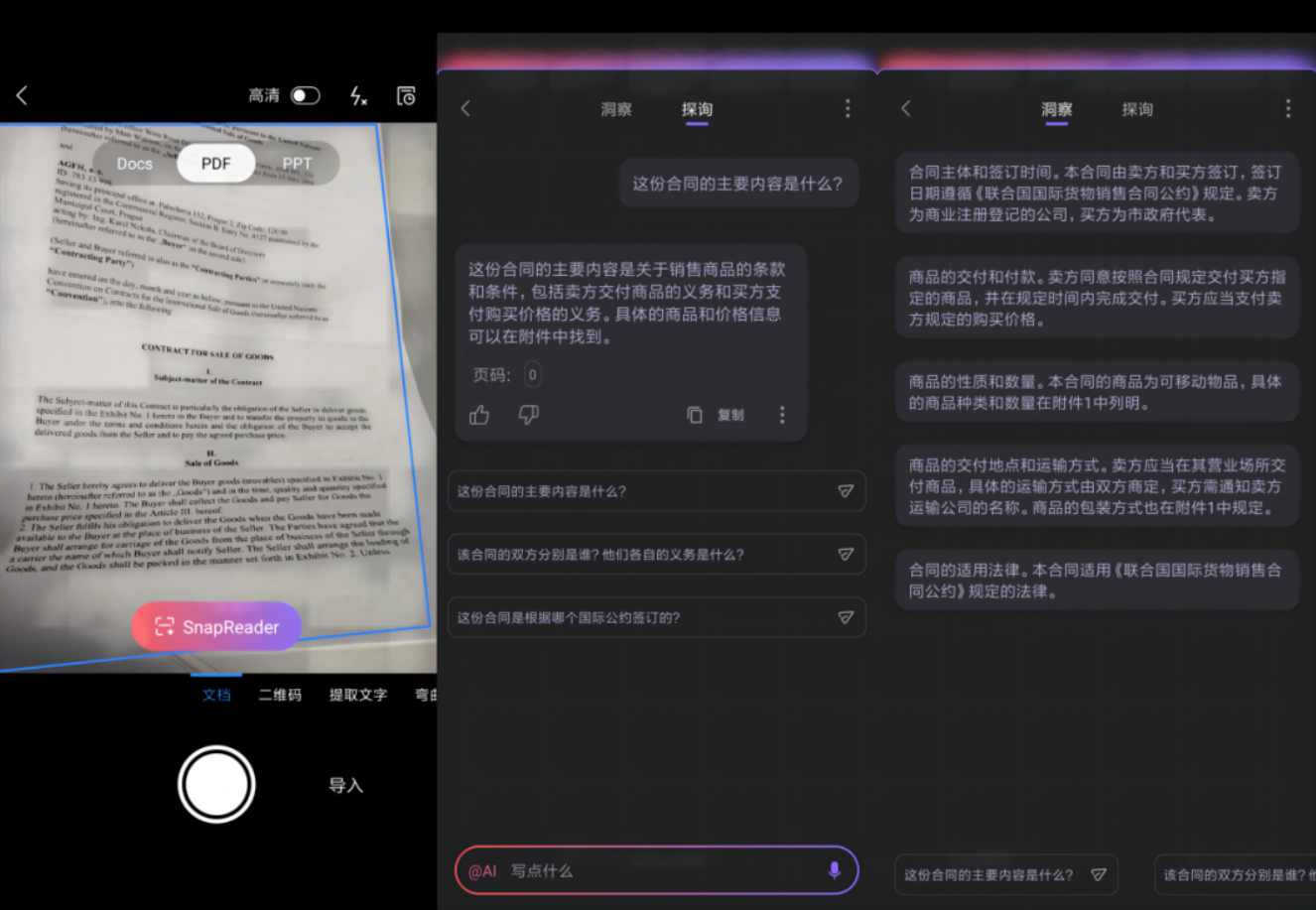 在 PDF 中,WPS 展示了閱讀分析和理解能力。WPS AI 能夠“閱讀包括論文、合同、課件等文檔”,用戶以問答方式則可以獲得關鍵信息。并(bing)且(qie),問答助手也(ye)會提供文(wen)檔溯源功能,確保用戶能夠得知(zhi)信息來源。