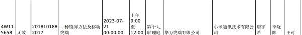 根據國家知識產權局最新發布的(de)口審公告顯示,小米近期(qi)對(dui)華為專利“ZL201810188201.7”發起了無效宣(xuan)告請(qing)求(qiu),將于(yu)7月21日口審。