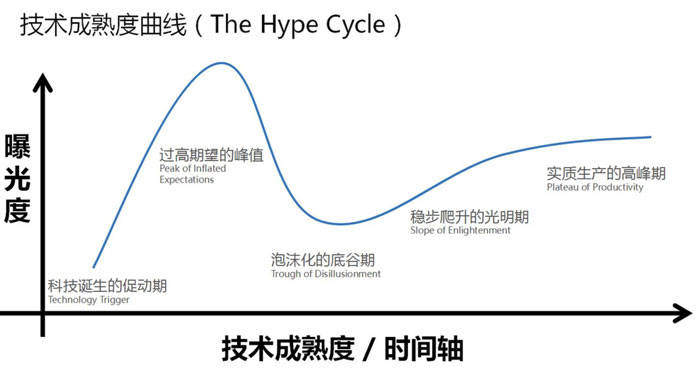 在日前由《財富》舉行的(de)活(huo)動中(zhong),威沙爾·夏引用了科技(ji)圈常用的(de)一(yi)個(ge)術語Hype cycle(技(ji)術成(cheng)熟(shu)(shu)度曲(qu)(qu)線)。其中(zhong),這個(ge)詞匯主要描(miao)述了一(yi)項(xiang)技(ji)術從(cong)誕(dan)生到成(cheng)熟(shu)(shu)的(de)一(yi)般(ban)過(guo)程。相關曲(qu)(qu)線表(biao)明,每項(xiang)技(ji)術的(de)發展過(guo)程基本可分為五個(ge)階段(duan):上升期(qi)(qi)(qi)、快(kuai)速發展期(qi)(qi)(qi)、下降期(qi)(qi)(qi)、爬坡期(qi)(qi)(qi)和(he)穩定應用期(qi)(qi)(qi)。