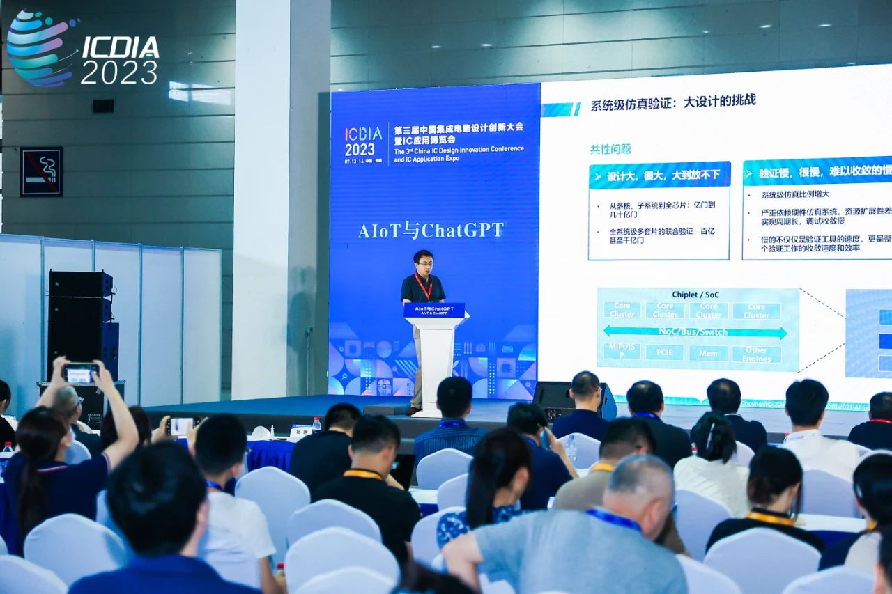 2023年7月(yue)13日至14日,備受(shou)期(qi)待的(de)(de)第三(san)屆中國集成電路設計創(chuang)新大會(ICDIA 2023)在無(wu)錫召開。作為國內領先(xian)的(de)(de)系統級驗(yan)證EDA解(jie)決(jue)方(fang)案提供商,芯華章受(shou)邀(yao)參(can)加此次盛會,在“AIoT與ChatGPT”分論壇上針對大系統芯片(pian)設計挑戰,分享(xiang)了自己(ji)的(de)(de)解(jie)決(jue)方(fang)案。