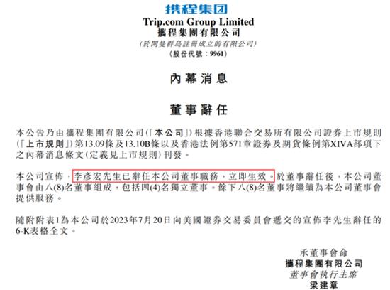 7月20日,攜程集團發布公(gong)告(gao)稱,李彥宏已(yi)辭任(ren)公(gong)司董事職務(wu),立(li)即生效。