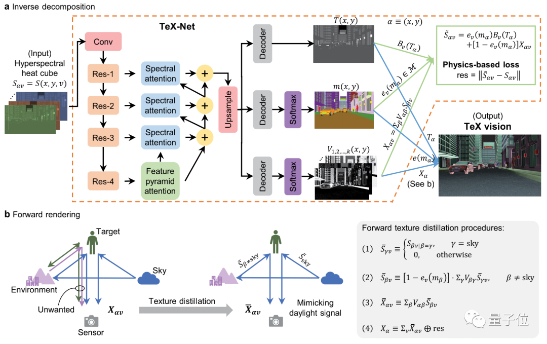 其次,由于(yu) TeX 的(de)簡(jian)并性(xing)(xing),必須指(zhi)定以下數(shu)學結構來確保逆映射的(de)唯一性(xing)(xing)(α、β 代(dai)表(biao)物(wu)體的(de)指(zhi)數(shu),v 是(shi)波數(shu)),因此必須學習熱照明系數(shu) V 而不是(shi)紋理 X。也就是(shi)說,TeX-Net 不能(neng)端到端地訓練(lian)。