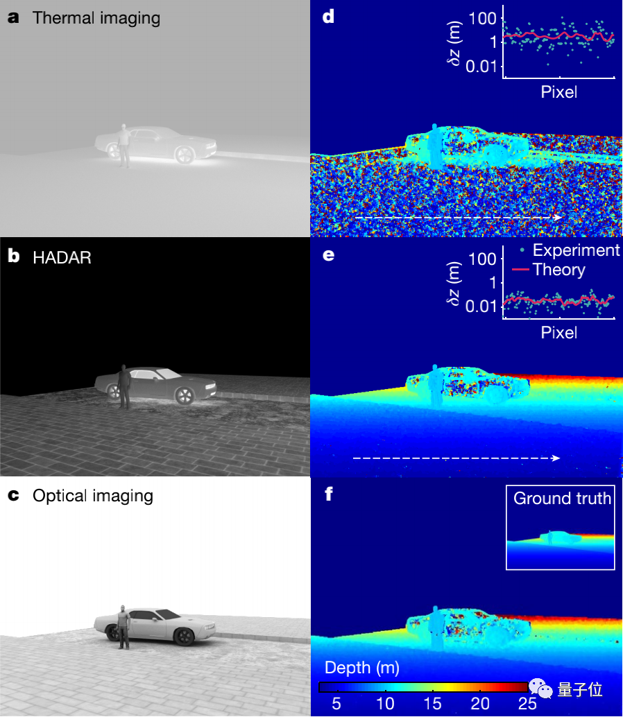 如下圖所示(shi),第一(yi)行顯示(shi)基(ji)于原(yuan)始(shi)熱圖像的測(ce)距(ju)(ju)方(fang)法(fa)由于重影導(dao)致精度很差;第二行則顯示(shi)與熱測(ce)距(ju)(ju)相比,HADAR 中(zhong)恢(hui)復的紋理和增強的精度約達 100 倍;