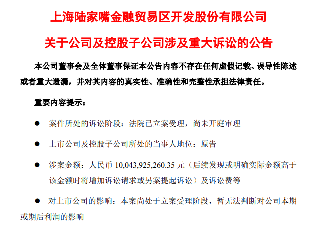圖1,陸家嘴金融(rong)貿易區(qu)開發股份有限公司公告