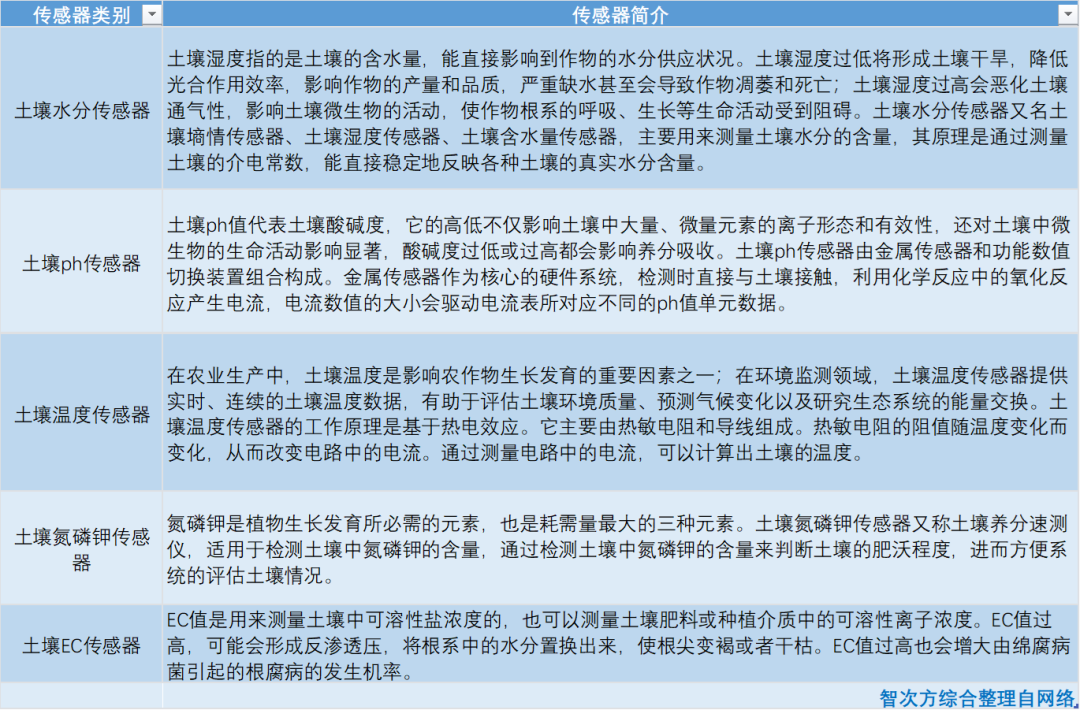 表3:土壤傳感(gan)器主要分類(lei)及介紹