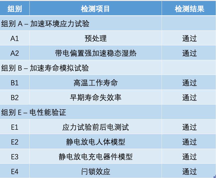 此(ci)次NRT81750認證過程,通(tong)過了環境(jing)壓力加速測(ce)(ce)試(shi)(shi)(shi)(shi)(shi)、使用壽命(ming)模擬(ni)測(ce)(ce)試(shi)(shi)(shi)(shi)(shi)、封裝(zhuang)組(zu)裝(zhuang)整合測(ce)(ce)試(shi)(shi)(shi)(shi)(shi)、芯(xin)片晶圓可靠度測(ce)(ce)試(shi)(shi)(shi)(shi)(shi)、電氣特性(xing)確認測(ce)(ce)試(shi)(shi)(shi)(shi)(shi)、篩選監控測(ce)(ce)試(shi)(shi)(shi)(shi)(shi)、封裝(zhuang)凹陷整合測(ce)(ce)試(shi)(shi)(shi)(shi)(shi)等(deng)全系列AEC-Q100車規(gui)級(ji)認證測(ce)(ce)試(shi)(shi)(shi)(shi)(shi)。