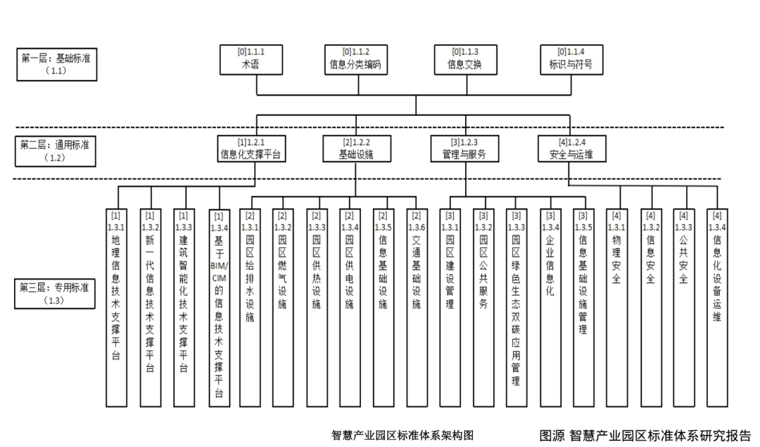 智(zhi)慧(hui)(hui)(hui)產(chan)業(ye)(ye)園區(qu)標(biao)(biao)準(zhun)(zhun)的研(yan)制和更(geng)新發展應具有其連貫(guan)性和穩定性的內在需要。智(zhi)慧(hui)(hui)(hui)產(chan)業(ye)(ye)園區(qu)是智(zhi)慧(hui)(hui)(hui)城(cheng)市建設的延伸,結(jie)合(he)當前技術發展,特(te)別是當前以大數據為(wei)驅(qu)動的新型(xing)智(zhi)慧(hui)(hui)(hui)產(chan)業(ye)(ye)園區(qu)發展建設,突(tu)出了數據的重(zhong)要性和引領性地位(wei)。智(zhi)慧(hui)(hui)(hui)產(chan)業(ye)(ye)園區(qu)標(biao)(biao)準(zhun)(zhun)體系總體框架(jia)包(bao)括(kuo)“基礎標(biao)(biao)準(zhun)(zhun)”、“通用(yong)標(biao)(biao)準(zhun)(zhun)”、“專用(yong)標(biao)(biao)準(zhun)(zhun)”三個(ge)層級(ji)。標(biao)(biao)準(zhun)(zhun)體系結(jie)構框架(jia)如下(xia)圖所示。