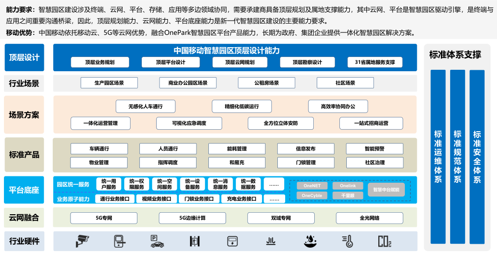優勢:憑借(jie)網絡建設優(you)勢和政企(qi)資源影響力,5G新基建優(you)勢,通過構建開放平臺和孵化應(ying)用(yong)生態,在智慧園區建設中(zhong)占先機。