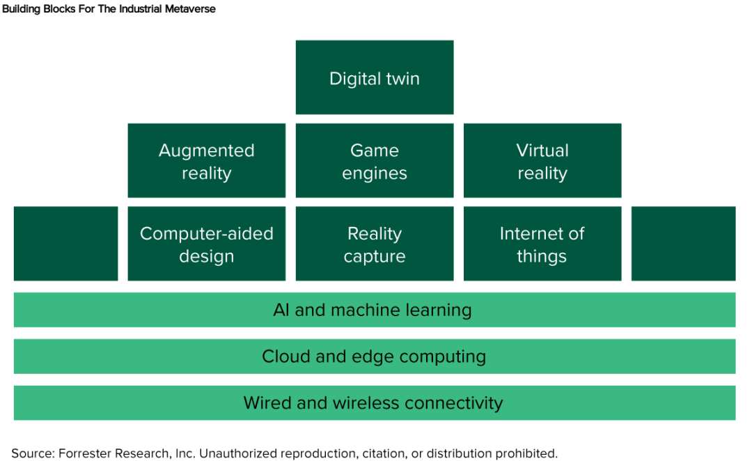 市場(chang)研究機構(gou)(gou)Forrester Research曾經分析(xi)認為(wei),工業元宇宙是(shi)一(yi)個高度復雜的系統(tong)工程,需要數字孿(luan)生、虛擬現(xian)實(shi)、機器人、自動駕駛、5G通信、云計算、大數據(ju)分析(xi)、人工智能、區塊鏈(lian)以及計算機圖(tu)形學等多項(xiang)前沿技術的深度融合,才能共同構(gou)(gou)建起連接數字世界與(yu)真實(shi)世界的龐大基礎設施。