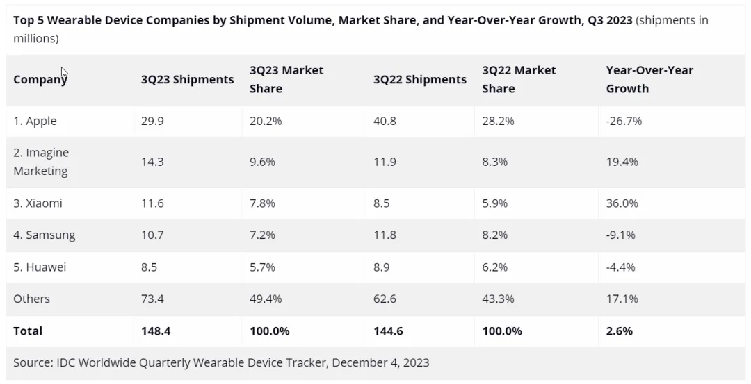 《中國可穿戴設備市場季度跟(gen)蹤(zong)報(bao)告》,IDC