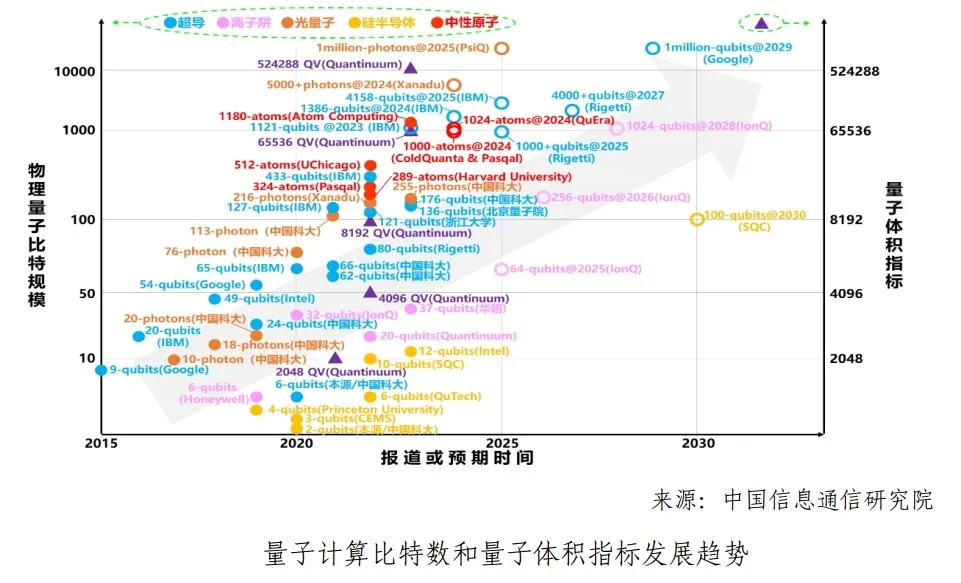 中國信通院發布的(de)《量(liang)子(zi)(zi)計算發展(zhan)態勢研究報告(2023 年)》顯示,目(mu)前(qian)的(de)量(liang)子(zi)(zi)計算實現路(lu)線(xian)(xian),暫時沒有(you)出現具有(you)綜合(he)優(you)勢的(de)路(lu)線(xian)(xian),發展(zhan)路(lu)線(xian)(xian)都有(you)各自(zi)的(de)優(you)勢和不(bu)足。
