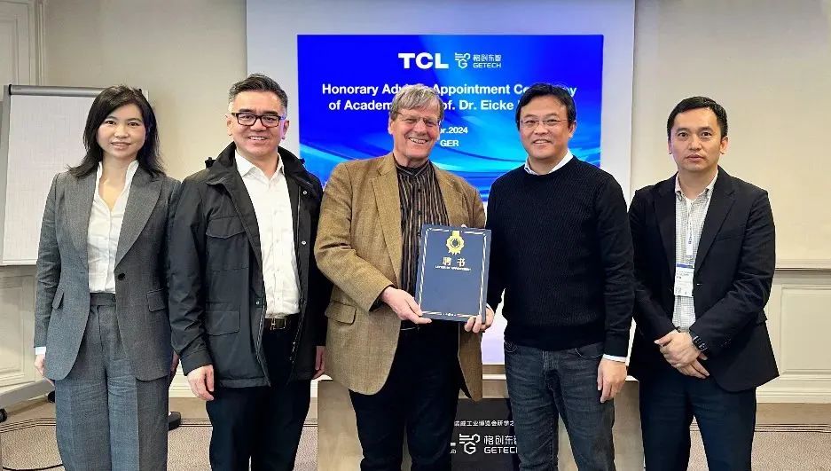 近日,為(wei)進一步拓展全球化視野與(yu)布局,格(ge)創(chuang)東(dong)(dong)智攜手TCL智能制造CLUB德國漢(han)諾(nuo)威工(gong)業展研學團(tuan)隊與(yu)德國工(gong)程科學院院士Prof. Dr. Eicke R. Weber在漢(han)諾(nuo)威展開座談交流(liu)。在TCL科技(ji)COO王成,以及TCL各(ge)產業領導的見(jian)證下,格(ge)創(chuang)東(dong)(dong)智正(zheng)式聘任Prof. Dr. Eicke R. Weber為(wei)TCL格(ge)創(chuang)東(dong)(dong)智外籍專(zhuan)家顧問。